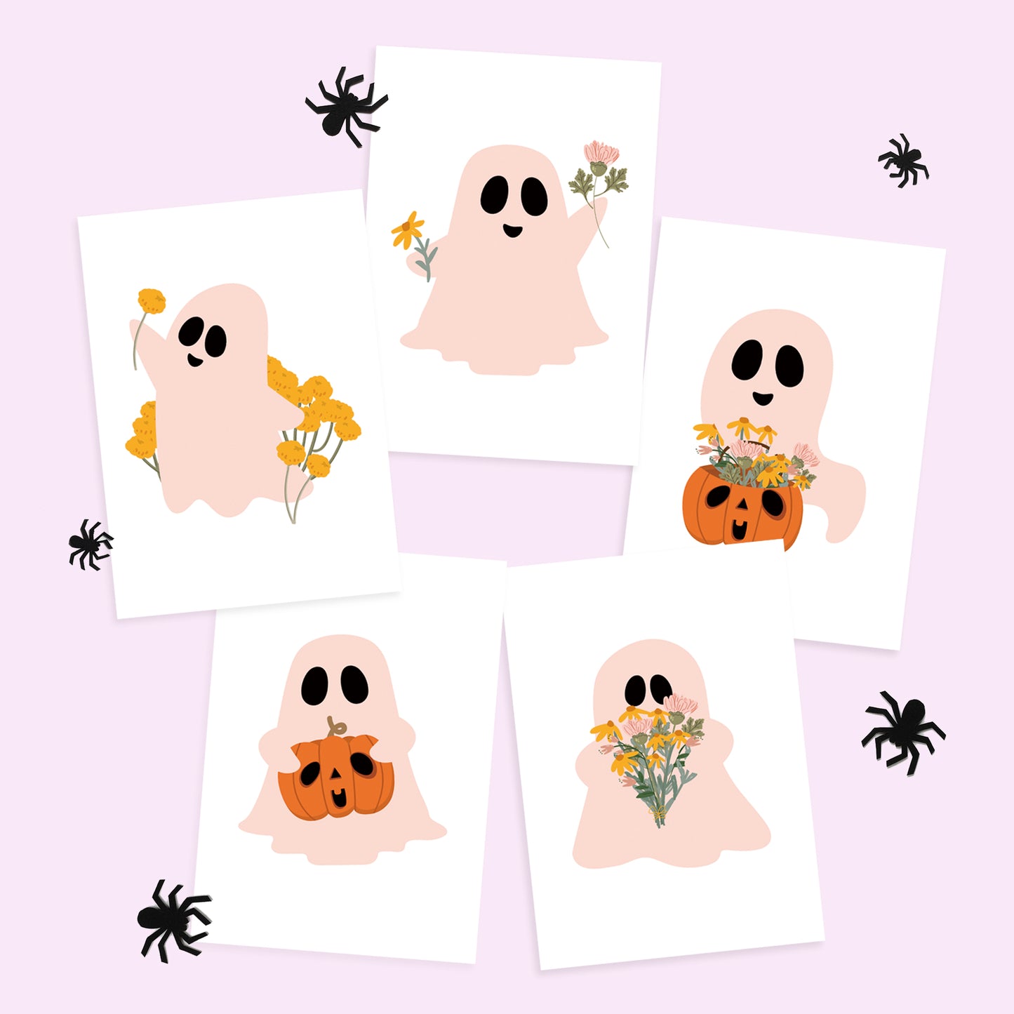 SPOOKY CUTE WHITE- SET OF 5 PRINTS