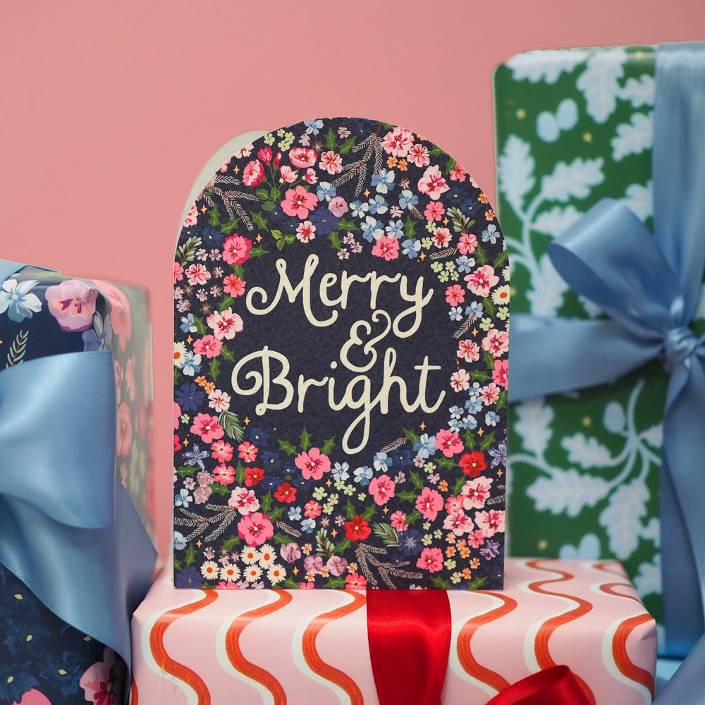 MERRY AND BRIGHT HOLLYHOCK CHRISTMAS CARD