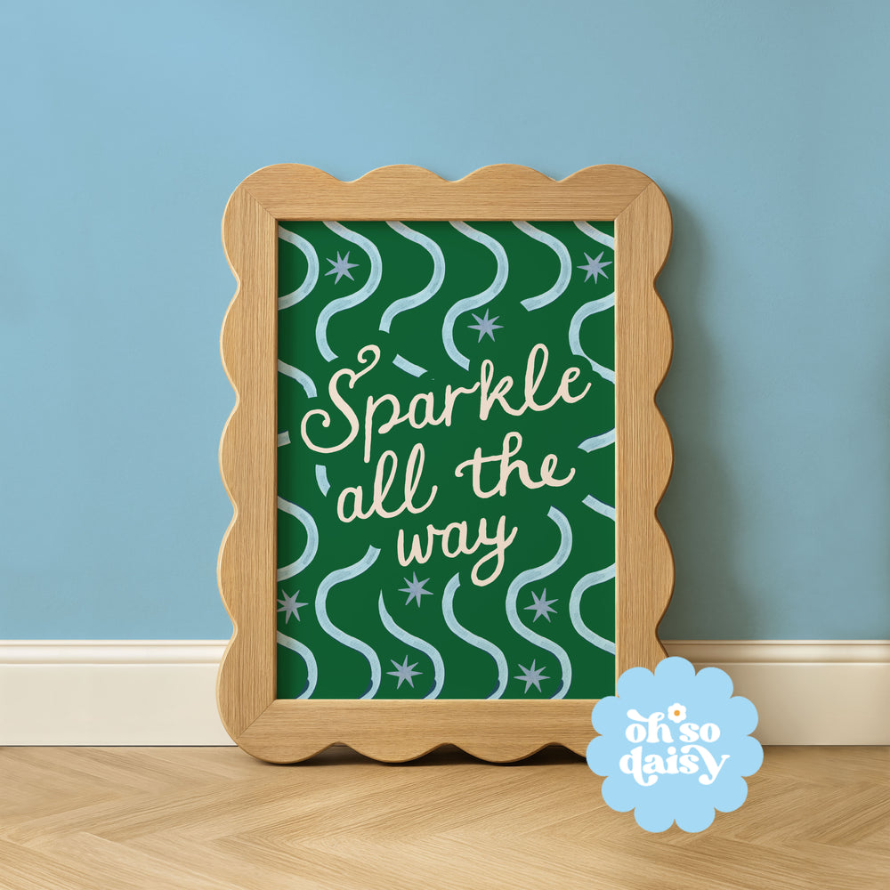 Framed artwork of striped legs and a boot with shamrocks on a pink wall, 'oh so daisy' brand visible.