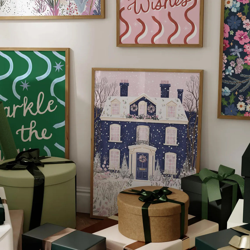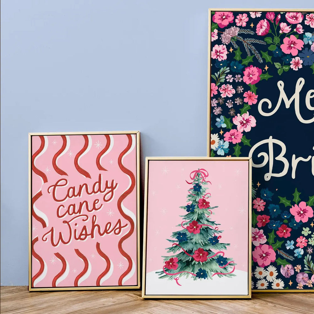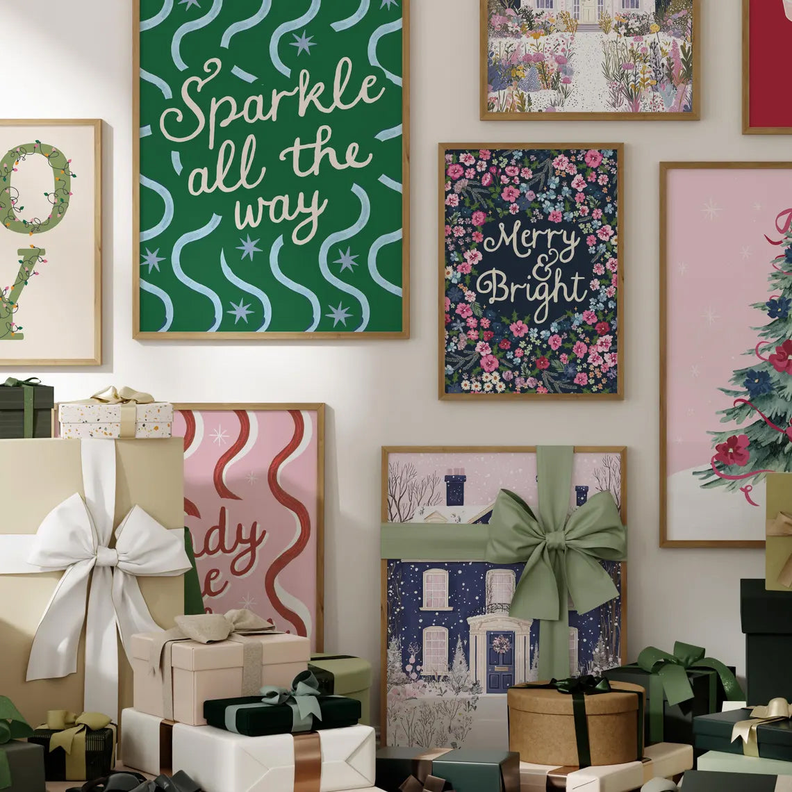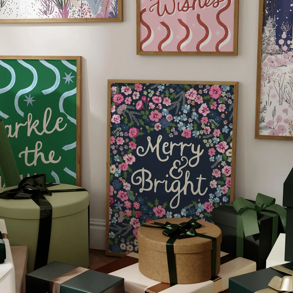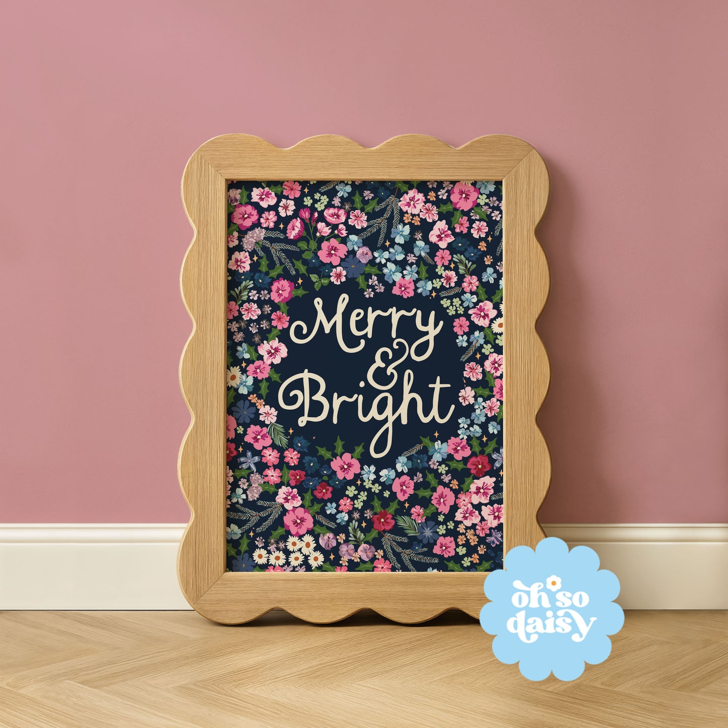 MERRY & BRIGHT HOLLYHOCK PRINT