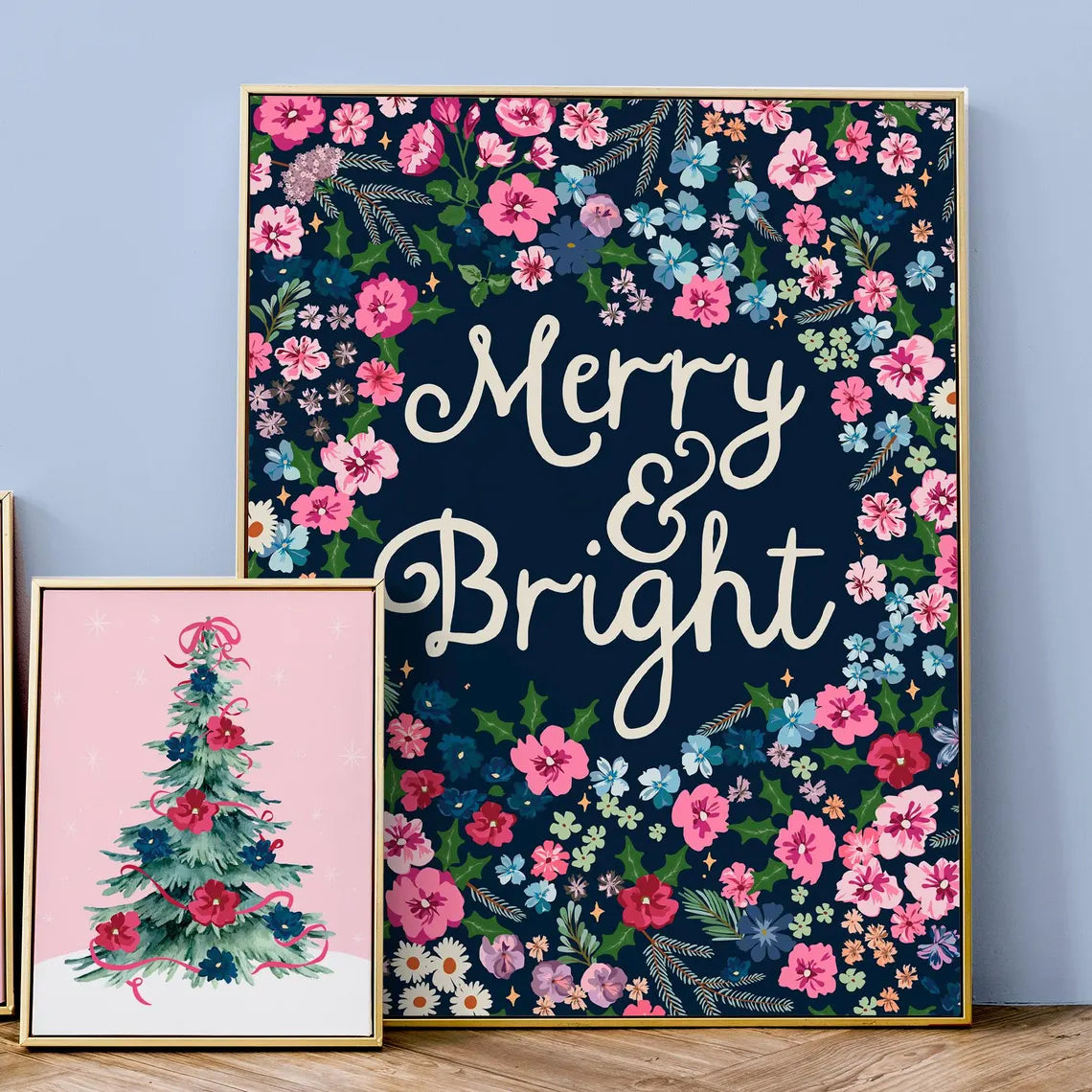 MERRY & BRIGHT HOLLYHOCK PRINT