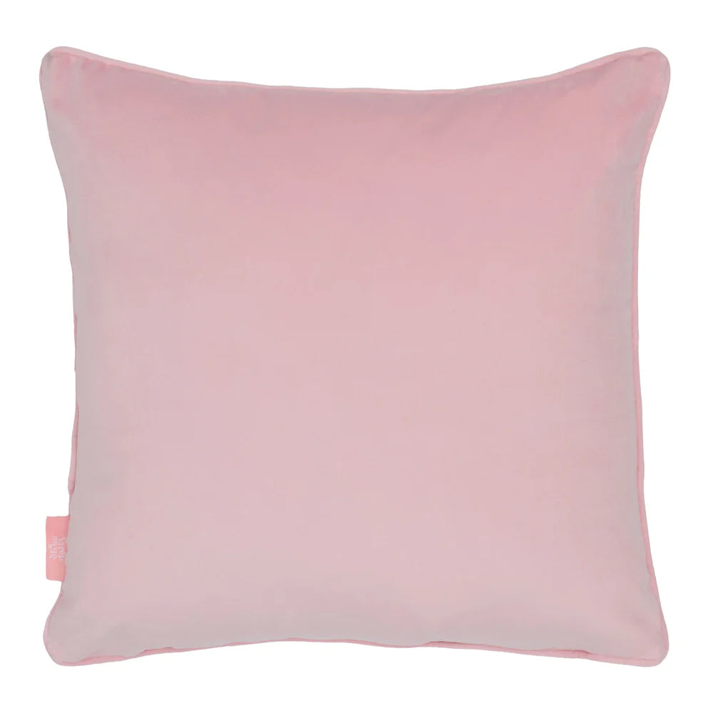 Fill your space with the power of flowers with this eccentric floral French velvet cushion. This design was created for Lust Home by UK designer Oh So Daisy. The brights on vintage cream design on the front is complemented by a pink back and piping.
