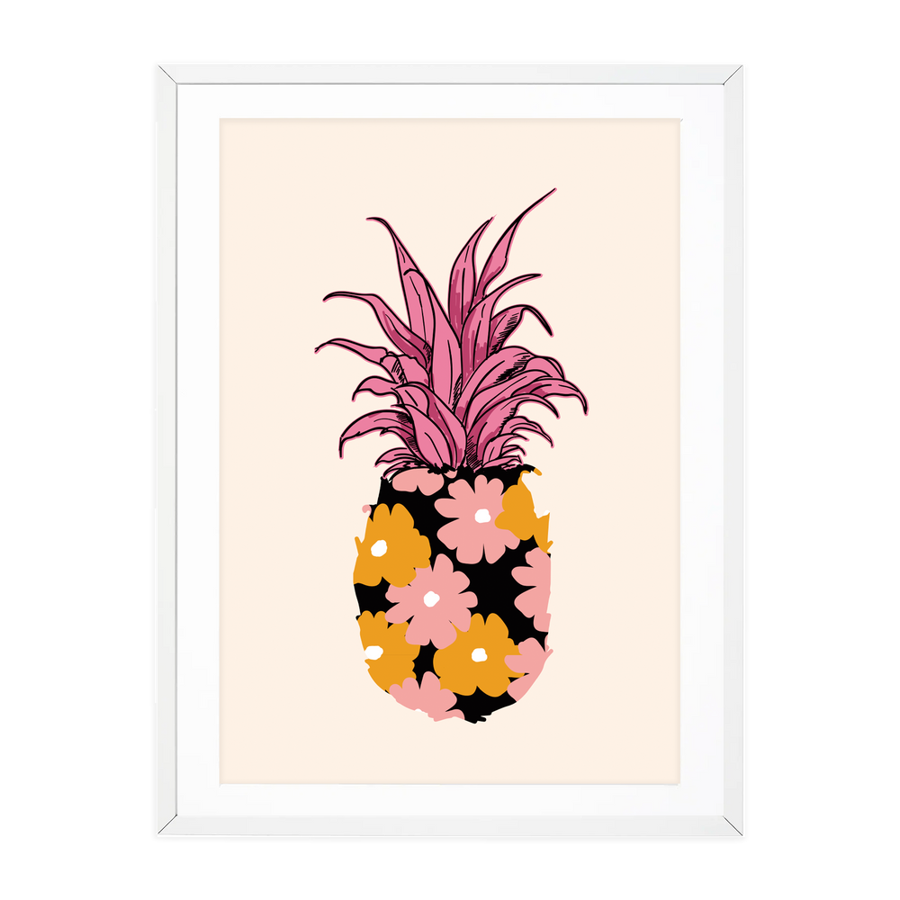 Framed artwork with floral design on a pink background, featuring 'oh so daisy' logo.