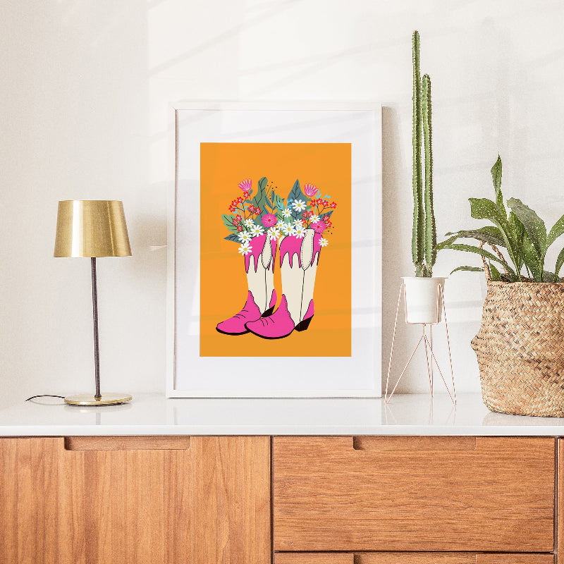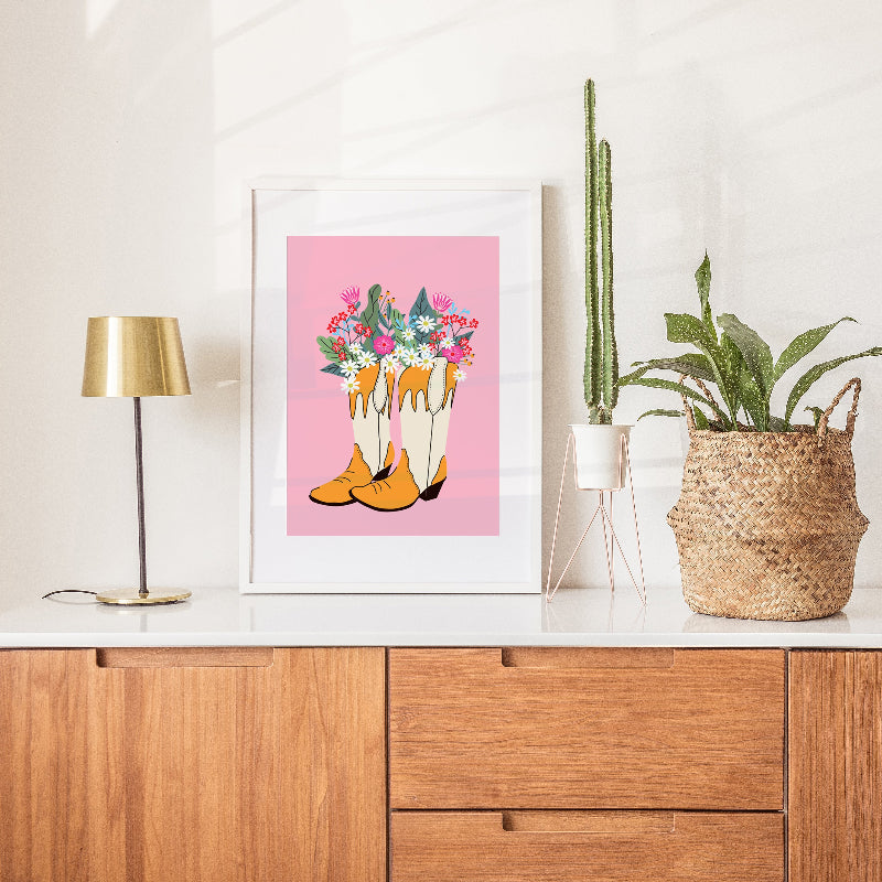 THESE COWBOY BOOTS FUSCHIA PRINT