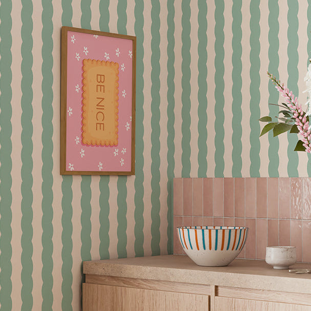 Soft Serve Mint Wiggle Stripe Wallpaper