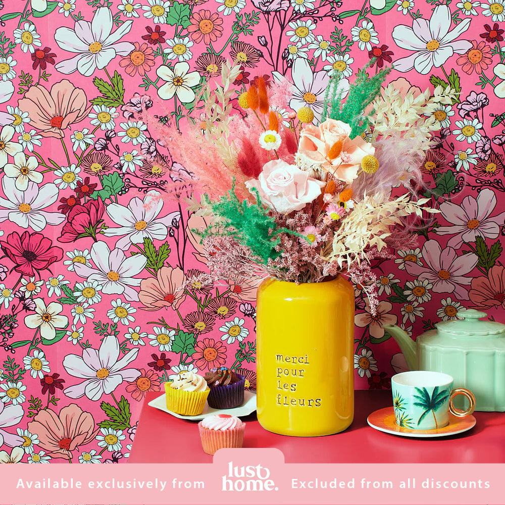 Shes A Wildflower in Rose Pink Wallpaper