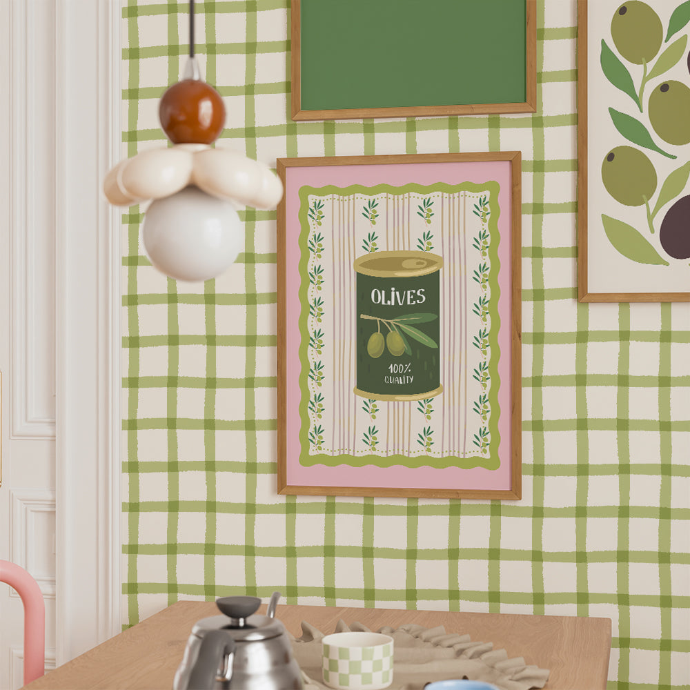 Our Cottage Gingham Soft Moss Green Wallpaper is a hand-painted, UK-made non-woven wallpaper featuring a classic blue gingham check — perfect for modern country interiors, feature walls, kitchens, nurseries, and living spaces.
